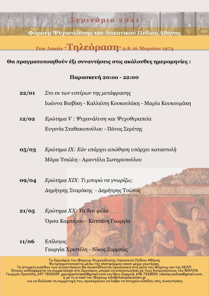 | 12 Φεβρουαρίου 2021 | Ερώτημα V: Ψυχανάλυση και Ψυχοθεραπεία από την Ευγενία Σταθακοπούλου και τον Πάνο Σερέτη |