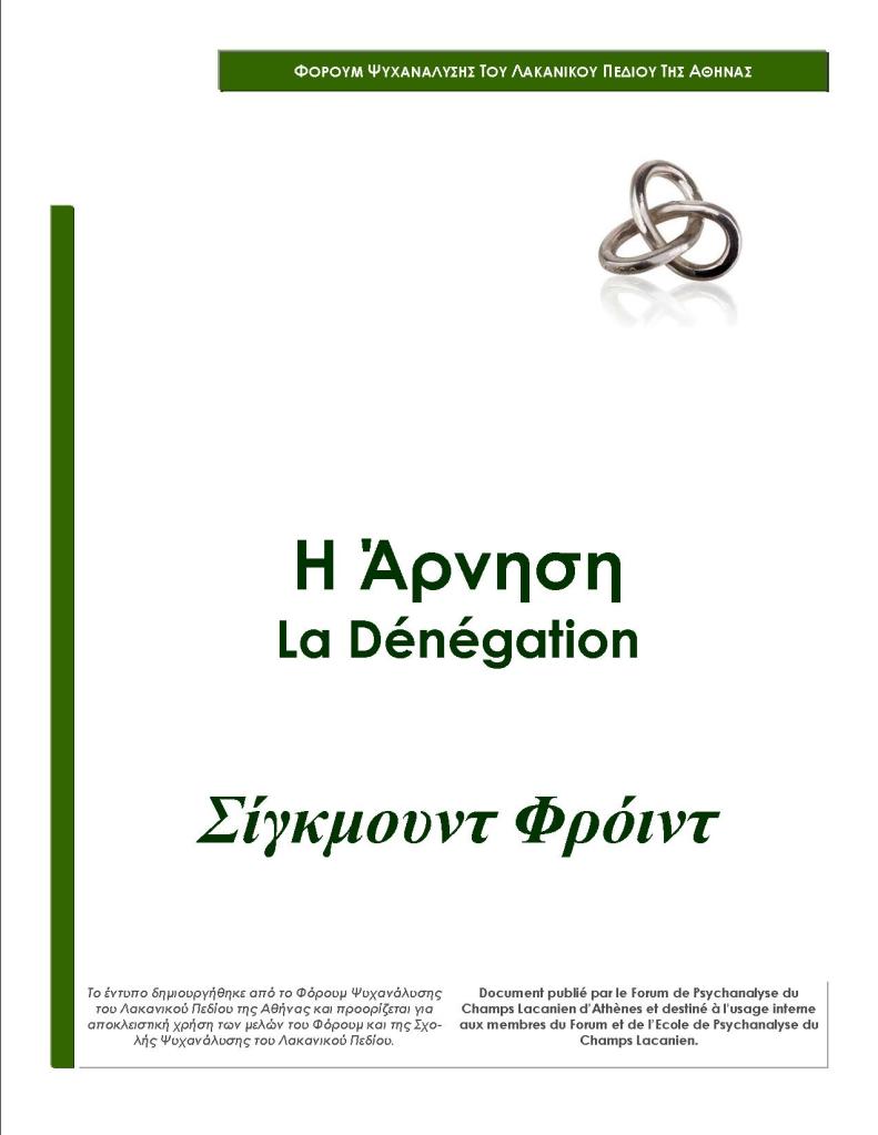 Κείμενο σύμφωνα με το πρωτότυπο άρθρο του Σίγκμουντ Φρόιντ «Η άρνηση», σε μετάφραση από τα γερμανικά από τον Henri Hoesli, στο Revue Française de Psychanalyse, Έβδομο έτος, T. VII, n° 2, Éd. Denoël et Steele, 1934, p. 174-177.