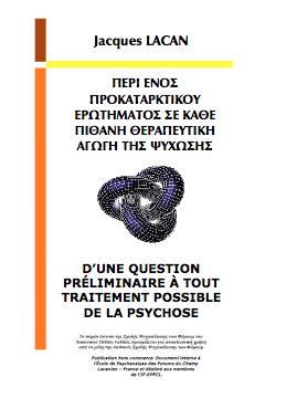 Το κείμενο «Περί ενός προκαταρκτικού ερωτήματος σε κάθε πιθανή θεραπευτική αγωγή της ψύχωσης» [«D’une question préliminaire à tout traitement de la psychose»] του Ζακ Λακάν, που μεταφράζεται εδώ, είναι δημοσιευμένο στο βιβλίο «Γραπτά» [«Écrits»], σελ. 531-583, Εκδόσεις Seuil, 1966, Παρίσι.