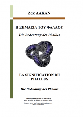 Το κείμενο «Η σημασία του φαλλού» [«Die Bedeutung des Phallus»] του Ζακ Λακάν, που μεταφράζεται εδώ, είναι δημοσιευμένο στο βιβλίο «Γραπτά» [«Écrits»], σελ. 685-695, Εκδόσεις Seuil, 1966, Παρίσι.