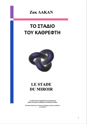 Το κείμενο «Το στάδιο του καθρέφτη ως διαμορφωτής της λειτουργίας του Εγώ όπως μας αποκαλύπτεται στην ψυχαναλυτική εμπειρία» [«Le stade du miroir comme formateur de la fonction du Je telle qu’ elle nous est révélée dans l’expérience psychanalytique»] του Ζακ Λακάν, που μεταφράζεται εδώ, είναι δημοσιευμένο στο βιβλίο «Γραπτά» [«Écrits»], σελ. 93 – 100, Εκδόσεις Seuil, 1966, Παρίσι.